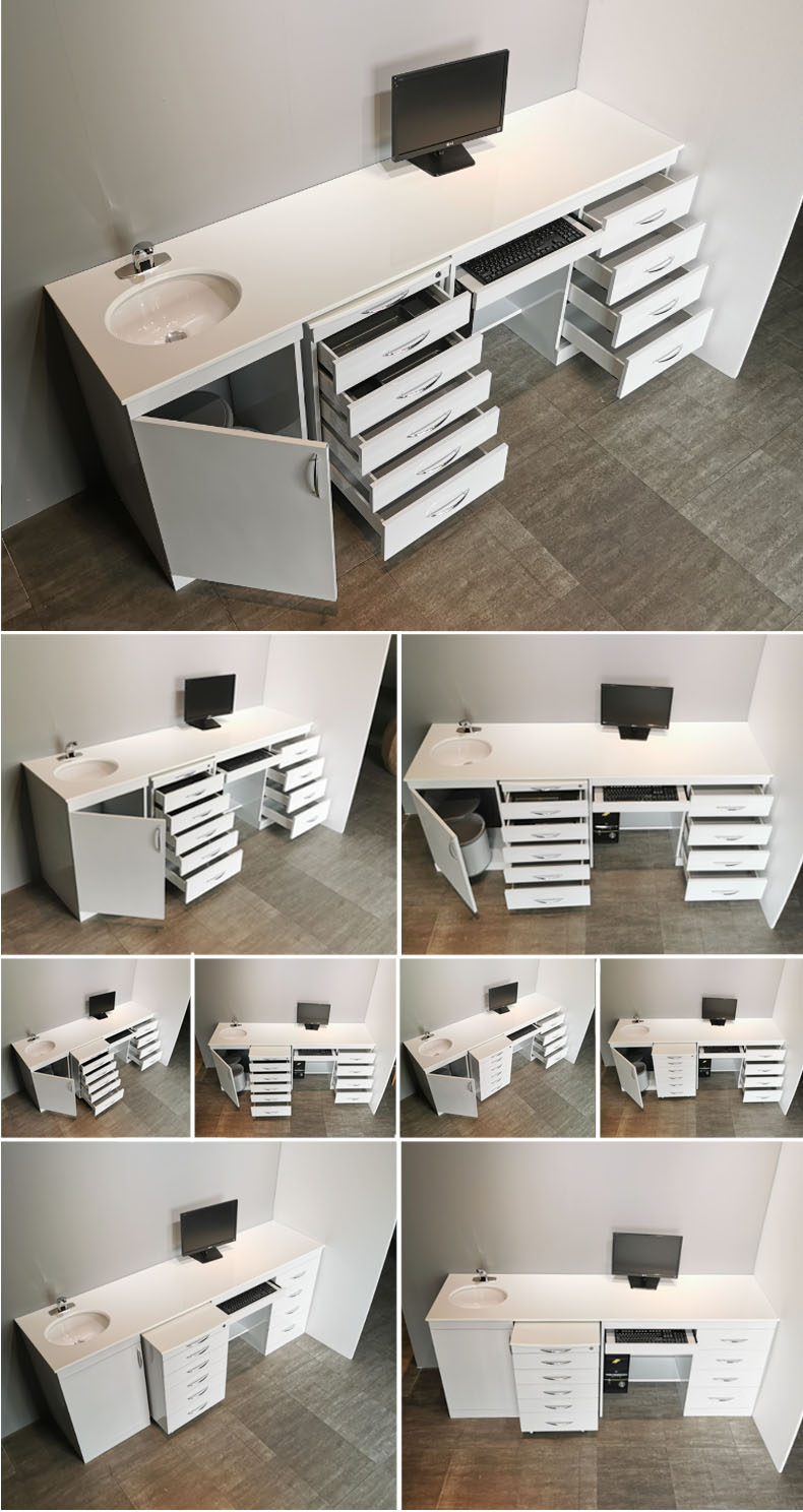 يمكن تخصيصها وفقًا للاحتياجات الخاصة والمتطلبات الشخصية لعيادات الأسنان. على سبيل المثال، إضافة شعار العيادة أو معلومات علامتها التجارية على الخزانة، والتصميم وفقًا لأحجام ومخططات المساحات المحددة لتلبية الاحتياجات الفريدة لمختلف العيادات، وتوفير حلول تخزين أسنان مميزة.