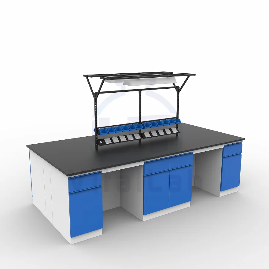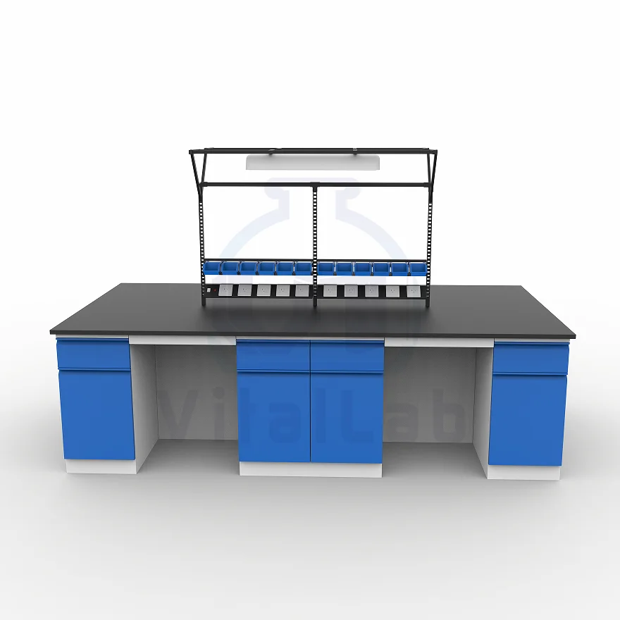 • Modern Electric Metal Laboratory Furniture Island Bench with Tools Rack 4 Drawers Epoxy Powder Coating for Workshop