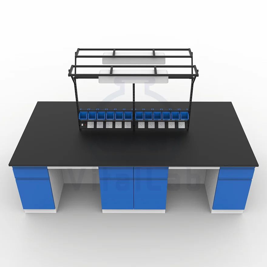 Modern Electric Metal Laboratory Furniture Island Bench with Tools Rack 4 Drawers Epoxy Powder Coating for Workshop