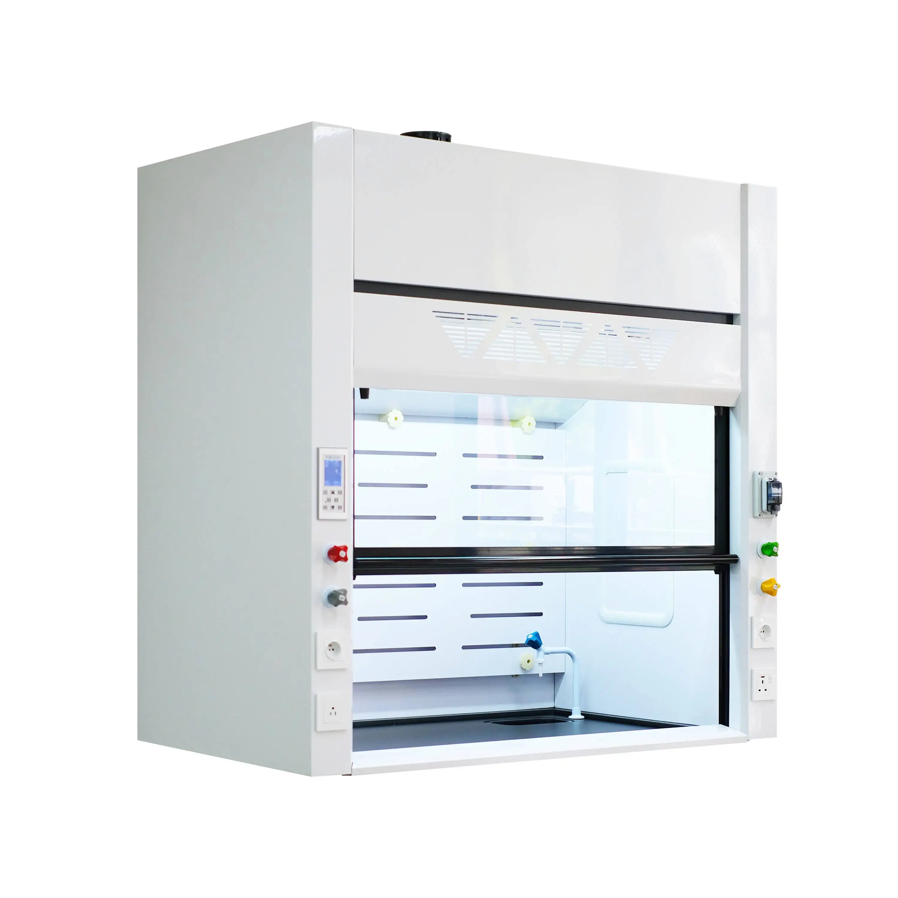 Use 5mm Compact grade laminate, fixed with PP material.Three-stage design, there is no blind angle of airflow in the cabinet, and all the toxic and harmful gases of different specific gravity generated during the experiment can be discharged out of the cabinet.