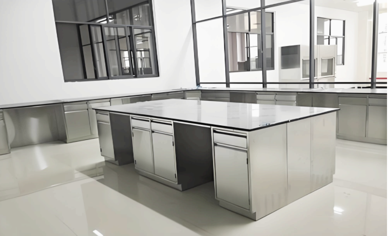 تتكون طاولة المختبر المصنوعة من الفولاذ المقاوم للصدأ عادةً من سطح عمل وخزانة وإطار. يُعد سطح العمل المكان الرئيسي للعمليات التجريبية، وهو مسطح وناعم. ولمنع تراكم السوائل عليه، عادةً ما تكون حوافه منحنية أو مزودة بحواف عازلة للماء. تُستخدم الخزانة لتخزين اللوازم التجريبية، مثل زجاجات الكواشف والأدوات الصغيرة، وغيرها. عادةً ما يكون باب الخزانة متصلاً بمفصلات من الفولاذ المقاوم للصدأ، سهلة الفتح والإغلاق، وتتميز بإغلاق محكم يمنع دخول الغبار والغازات الكيميائية إلى داخل الخزانة. يلعب الإطار دورًا في دعم سطح العمل والخزانة. وهي مصنوعة من أنبوب متين من الفولاذ المقاوم للصدأ بقياس 40*40*1.2 مم، يتحمل الأوزان الكبيرة ويضمن ثبات طاولة المختبر عند وضع الأدوات الثقيلة.